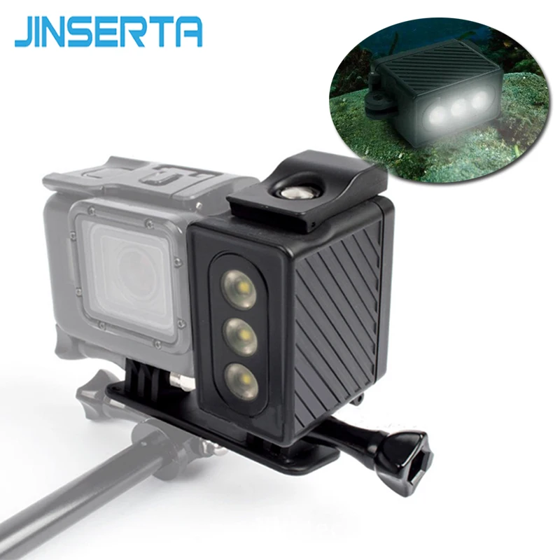Cheap JINSERTA Underwater 30m Diving Light Waterproof LED Video Light Lamp for Gopro Hero 6 5 Black 4 3+ 3 SJ7000 XiaoYi 300LM Light For Sale at AliExpress