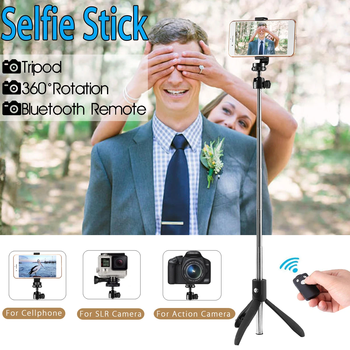 "Today, allow me to explain want to sadden, Check price before the sale ends. 3 in 1 Bluetooth Selfie Stick Remote Shutter Control Handheld Tripod Mini Extendable Monopod Universal For iPhone X For Samsung You will not regret if check price."