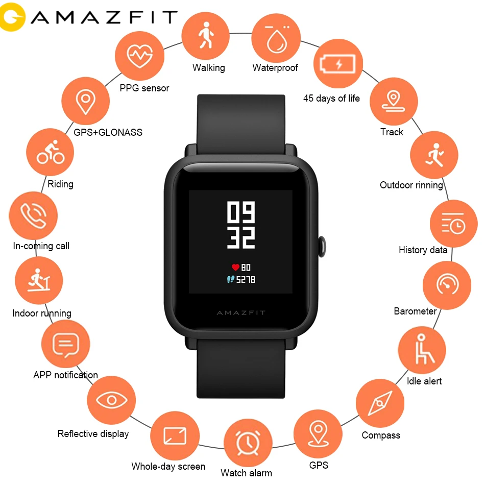 Original Xiaomi Huami Amazfit Bip Smartwatch Men Women Smart Watch Heat Rate Wristband Waterproof Sport GPS Fitness Tracker
