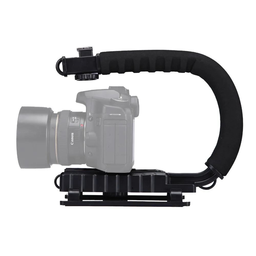 Online Order U/C Shaped Bracket Holder 3 Shoe Mounts Handle Handheld Video Action Stabilizer Grip for iPhone Canon Nikon Sony DSLR Camera For Sale at AliExpress