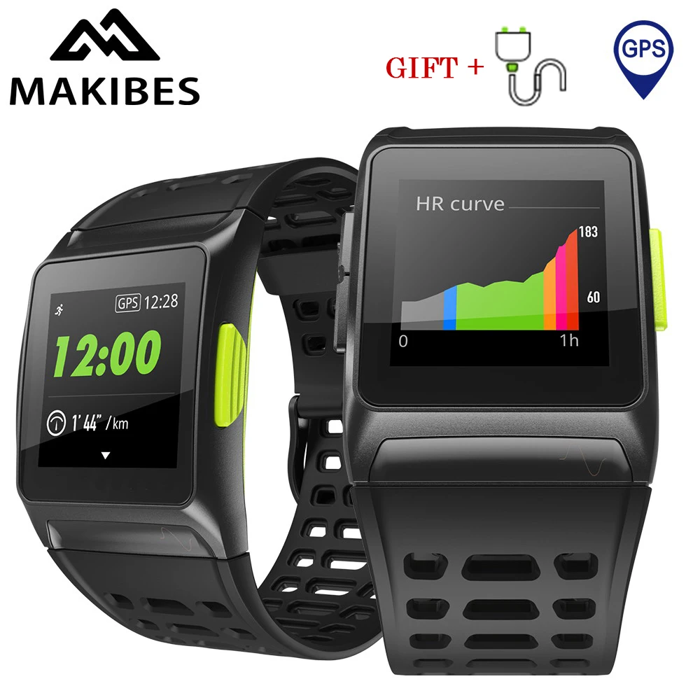 Buy Online Makibes BR1 GPS Sports Wristwatch Bluetooth 4.2 IP67 Waterproof IPS color screen Dynamic Heart rate tracker Strava Smart Watch For Sale at AliExpress