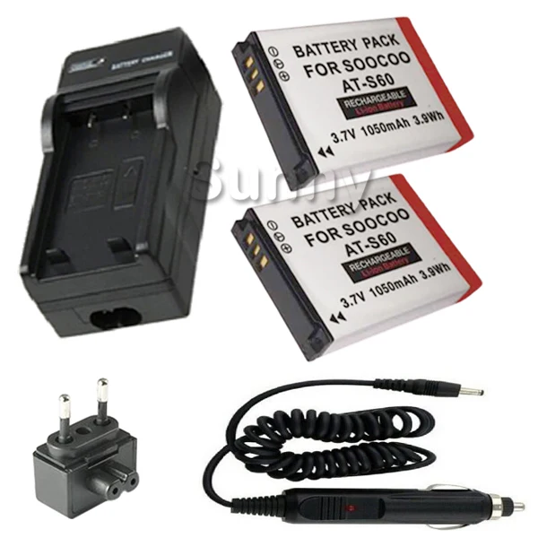 Best Price AT-S60 CAM SOOCOO S60 Accessories Li-Ion Rechargeable Battery (2-Pack) + Charger For SooCoo S60 Sports Action Cam Video Camera For Sale at AliExpress