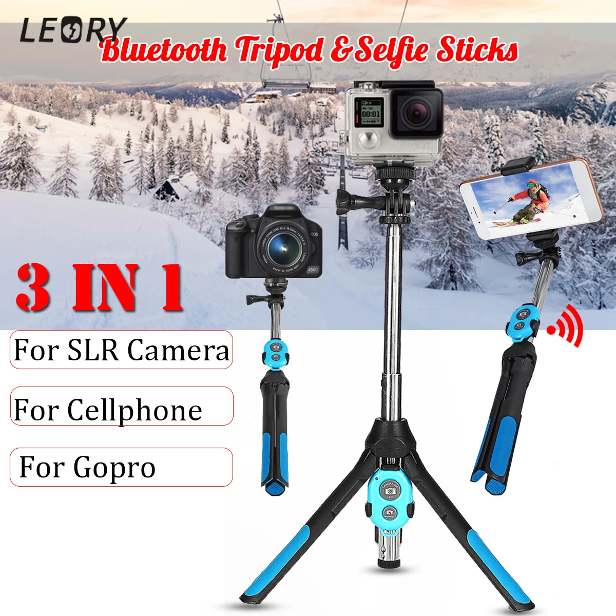 3 in 1 Foldable Selfie Stick Wireless Tripod Bluetooth Remote Controller Extendable Monopod for iPhone XR X 8 Camera for Gopro