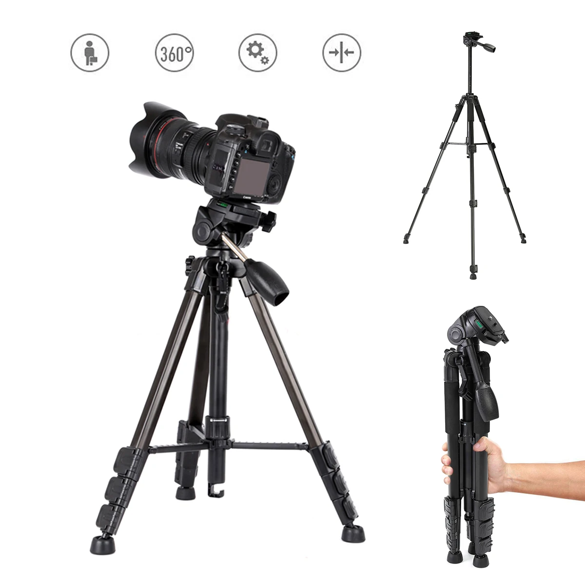 Cheap Camera Tripod, Hizek 57-inch Aluminum Lightweight Traverl Tripods Camera Video 180 degree Tilt Range lock 2018 Carry Bag For Sale at AliExpress
