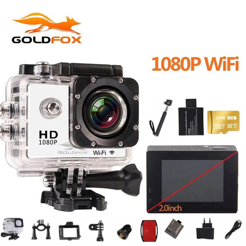 Good Original Goldfox 2.0 inch 1080P Full HD WiFi Action Camera 30M Go Waterproof Pro Bike Helmet Cam Mini video camera For Sale at AliExpress